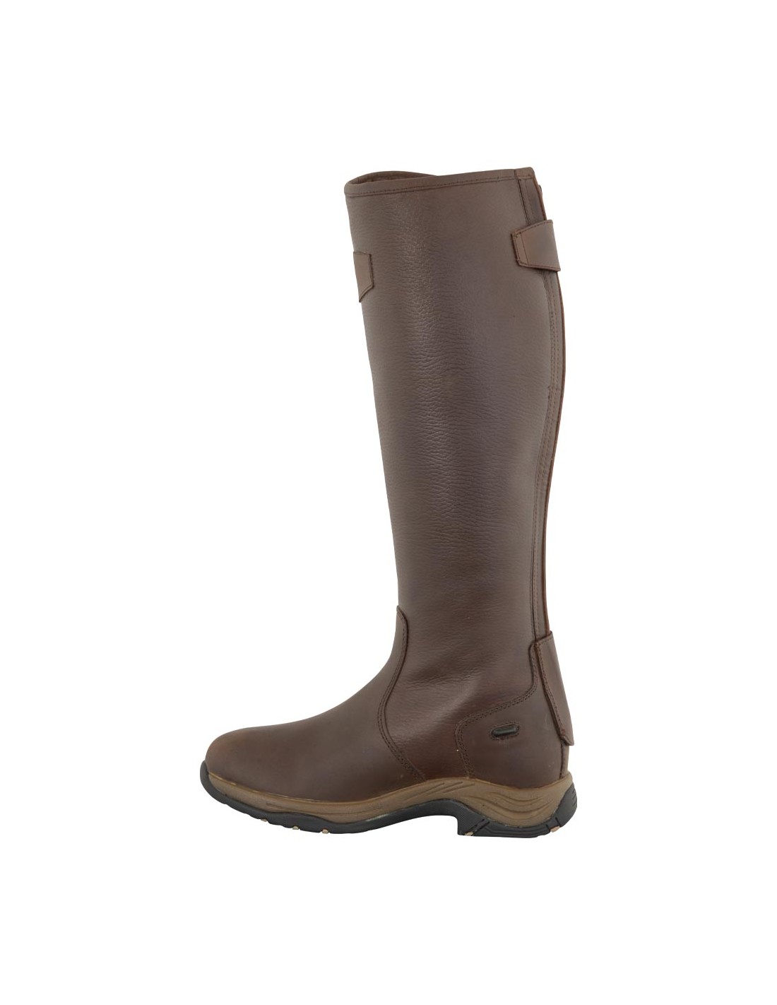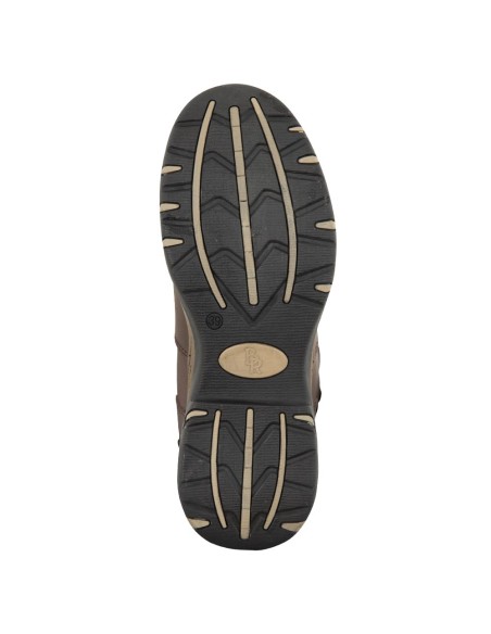 Cette botte déquitation robuste en cuir nubuck huilé est pourvue dune semelle à relief antidérapante en polyuréthane et caoutchouc. Le cuir huilé est déperlant et presque sans entretien. La botte est doublée avec de la laine synthétique. La première en polyuréthane avec mousse de gel absorbe les chocs et augmente le confort. La botte a une fermeture arrière à glissière YKK très forte, sécurisée par un bouton pression sur rabat en haut et au bas de la tige. De plus, la botte est équipée de deux taquets d'éperon. Linsert élastique au niveau du mollet et la sangle avec boucle réglable assurent un ajustement parfait et un beau look. La tige est en cuir grainé et le pied, le talon est les rabats sont en cuir lisse. La botte est très appropriée pour léquitation, mais également pour lusage dans lécurie et pour porter décontractée.