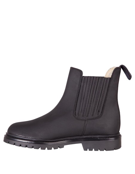 Jodhpur dhiver robuste et chaud en cuir nubuck avec une semelle à relief antidérapante en caoutchouc. Très approprié à lusage dans et autour de lécurie et également pour porter décontracté. Les jodhpurs sont entièrement doublés avec de la laine synthétique, ce qui garde les pieds au chaud. Les insertions élastiques au niveau des chevilles sont couvertes avec de cuir pour plus de confort et pour un beau look. Le cuir, avec une finition veloutée, est résistant à leau et presque sans entretien.