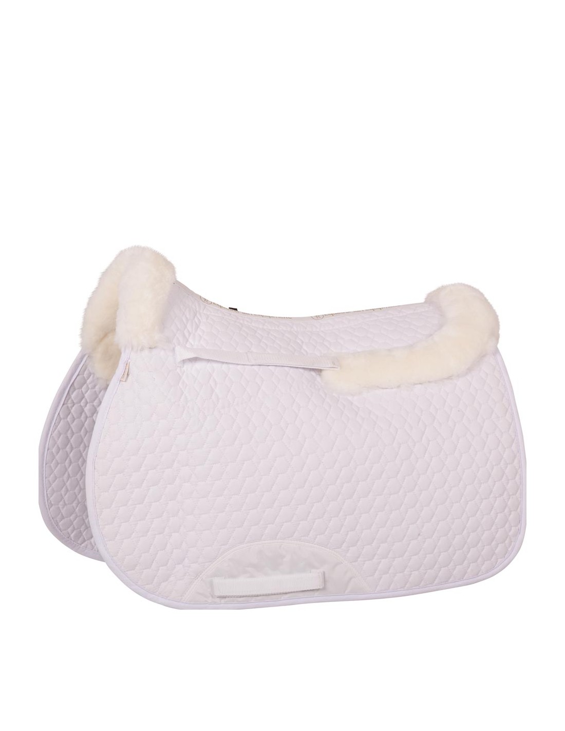 Katoenen zadeldek met een medicinale schapenvacht onderzijde onder het ruggedeelte met een uitsparing voor het wervelkanaal. De schapenvacht loopt door tot halverwege het zadeldek. Bij de schoft en aan de bovenzijde van de achterkant is het zadeldek voorzien van een brede schapenvacht rand. Daarnaast heeft het zadeldek verstelbare zadel- en singellussen met klittenband. Met een extra versteviging bij de singellus.