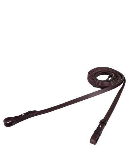 Lederen antislip teugel met rubberen binnenzijde, lederen handstops en blinde sluitingen, 16 mm. Zonder teugelstops.