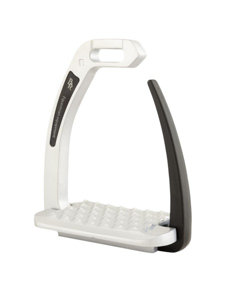 Het scharnierend veiligheidsmechanisme is gemaakt van kunststof dat meebuigt zodat de voet uit de beugel kan. Het gewicht van de ruiter zorgt ervoor dat de beugel opent bij een val. Op deze manier blijft de voet niet in de beugel hangen. Zodra de voet de beugel verlaat, sluit de beugel zich automatisch. Het voetbed is voorzien van een anti-slippatroon zodat vuil niet vast blijft kleven aan de beugel. De beugelzool is licht gekanteld, zodat de hak omlaag wordt gehouden. De afgeschuinde stijgbeugelriemophanging zorgt voor een goede beugelpositie, waardoor de voet in de juiste positie gehouden wordt. Dit geeft de ruiter meer stabiliteit en verbetert de beenligging.