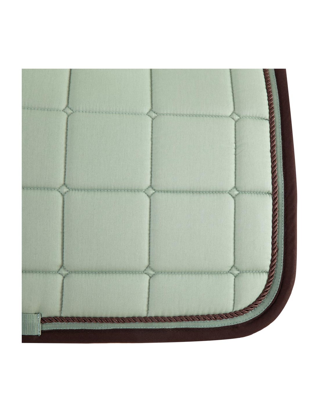 Dit luxe zadeldek van polykatoen twill heeft een schokabsorberende vulling van 700 g vilt en 10 mm foam. Het anatomisch gevormde zadeldek heeft een Cool Plus voering aan de onderzijde met uitstekende vochtregulerende en ademende eigenschappen. Door de anatomisch gevormde rugnaad ontstaat er minder snel druk op de ruggenwervels en schoft. Het zadeldek is afgewerkt met een koordbies en decoratief band en heeft een vierkante stepping. De singellussen zijn voorzien van klittenband. Machinewasbaar op 30°C. Dit zadeldek kan gecombineerd worden met diverse andere artikelen in dezelfde kleur uit de Xcellence lijn.