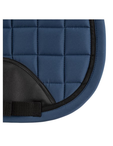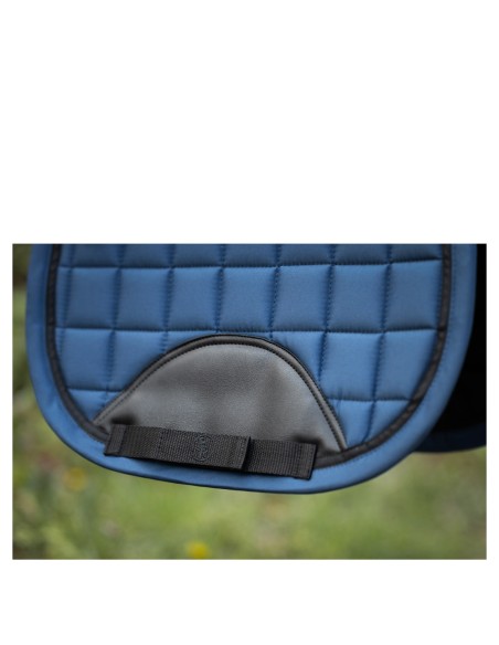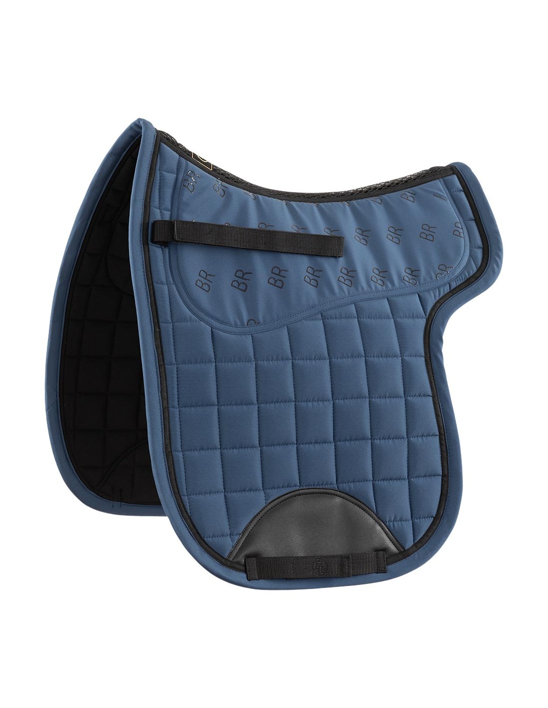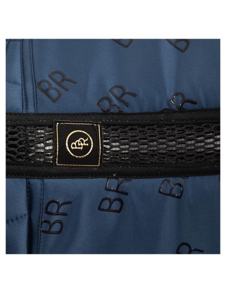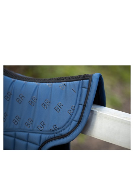 Het bovenste gedeelte van het zadeldek is deels voorzien van een extra dikke vulling voor een optimale schokabsorbtie. Het zadeldek is gevoerd met een vochtafvoerende, ademende, rekbare voering met een antislip ananasvormig patroon. De zadellussen en singellussen zijn sluitbaar met klittenband en onder de singellus bevindt zich een gedeelte van PU-leder voor een extra stabiele ligging van de singel. De buitenzijde van het zadeldek heeft een mooie, vierkante stepping en is afgewerkt met een bies in een matchende kleur. De BR siliconen zorgen ervoor dat het zadel goed op het zadeldek blijft liggen.