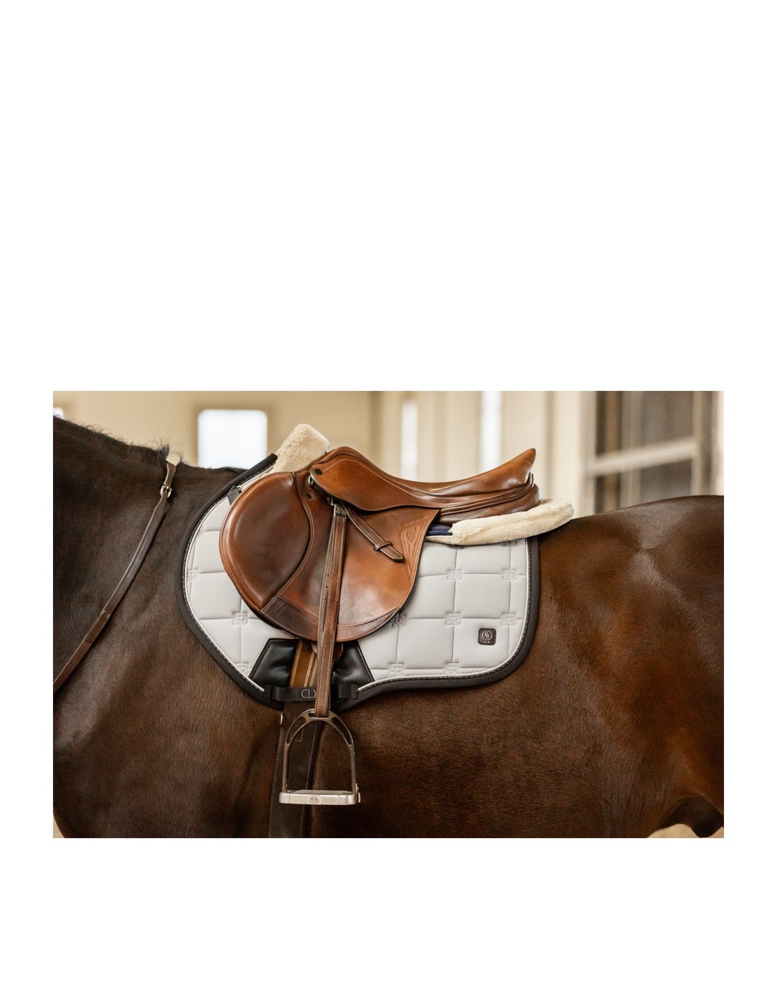 Het stijlvolle CLX zadeldek is vierkant gestept met BR logostiksels voor een unieke look en afgewerkt met twee subtiele biezen. Het zadeldek is uitgevoerd met verstelbare zadel- en singellussen met klittenband en een extra versteviging van synthetisch leder bij de singellus.