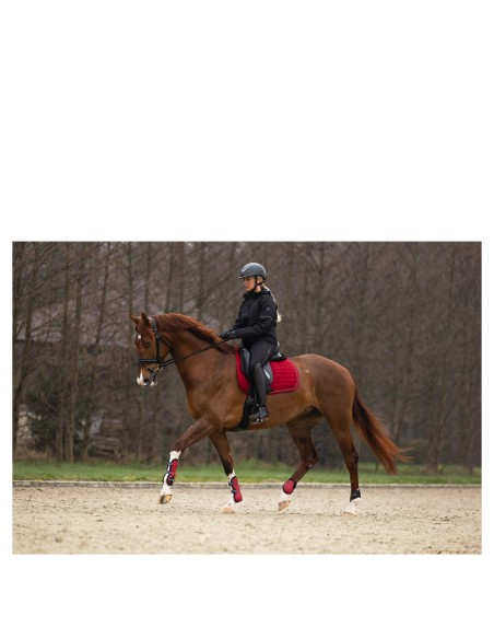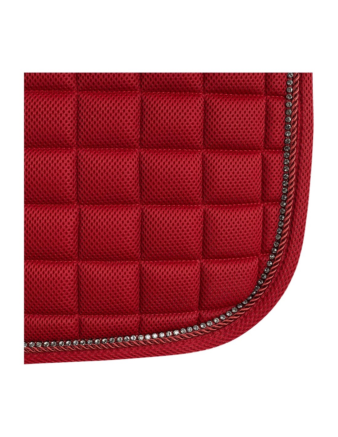 Anatomisch gevormd, extreem ademend, vochtregulerend en sneldrogend: dat zijn dé eigenschappen van het Ace Flow zadeldek die optimaal comfort bieden aan je paard. Daarnaast is het zadeldek deels omrand met een bijpassende koordbies en een glanzende ketting van steentjes.