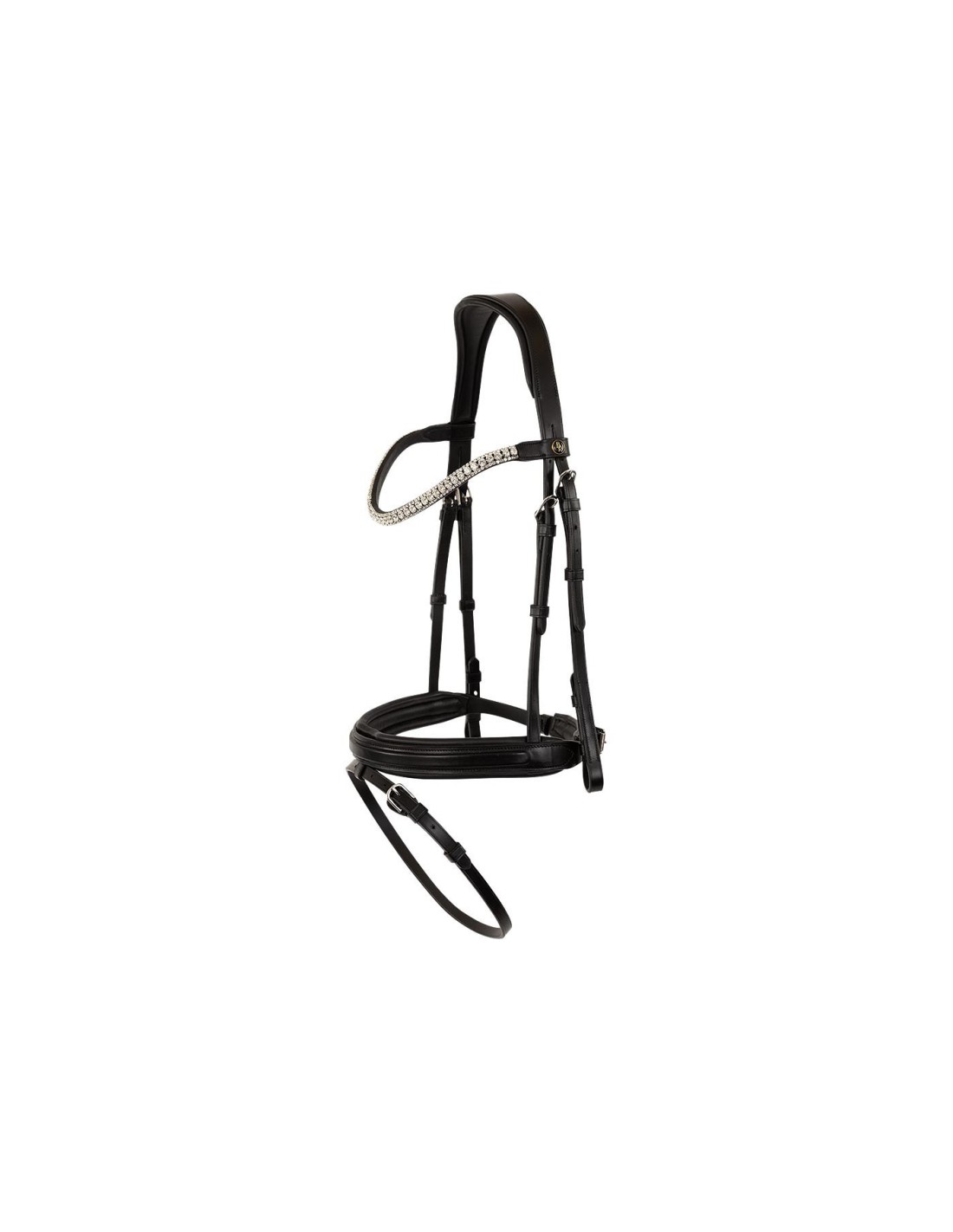 Het deels zacht gevoerde hoofdstel voelt prettig aan op het paardenhoofd en het anatomische kopstuk zorgt voor meer vrijheid achter de oren. De neusriem is vierkant gebombeerd en licht gebogen. Het lusje van de sperriem kan eenvoudig uit de neusriem gehaald worden als je ervoor kiest om zonder sperriem te rijden. Het hoofdstel is voorzien van stevige gespen met chroomfinish.