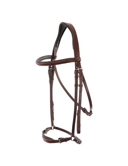 Hoofdstel met zacht gevoerd anatomisch kopstuk. Het rechte frondeel is vierkant gebombeerd. De bakstukken zijn voorzien van blinde sluitingen en de keelriem is verstelbaar met één gespsluiting aan de onderzijde. De lage neusriem is vierkant gebombeerd en bevat een brede zachte neusbeschermer. De lage neusriem is aan beide zeiden verstelbaar. Het hoofdstel is voorzien van ronde, glanzende, zilverkleurige fournituren. Exclusief teugel.