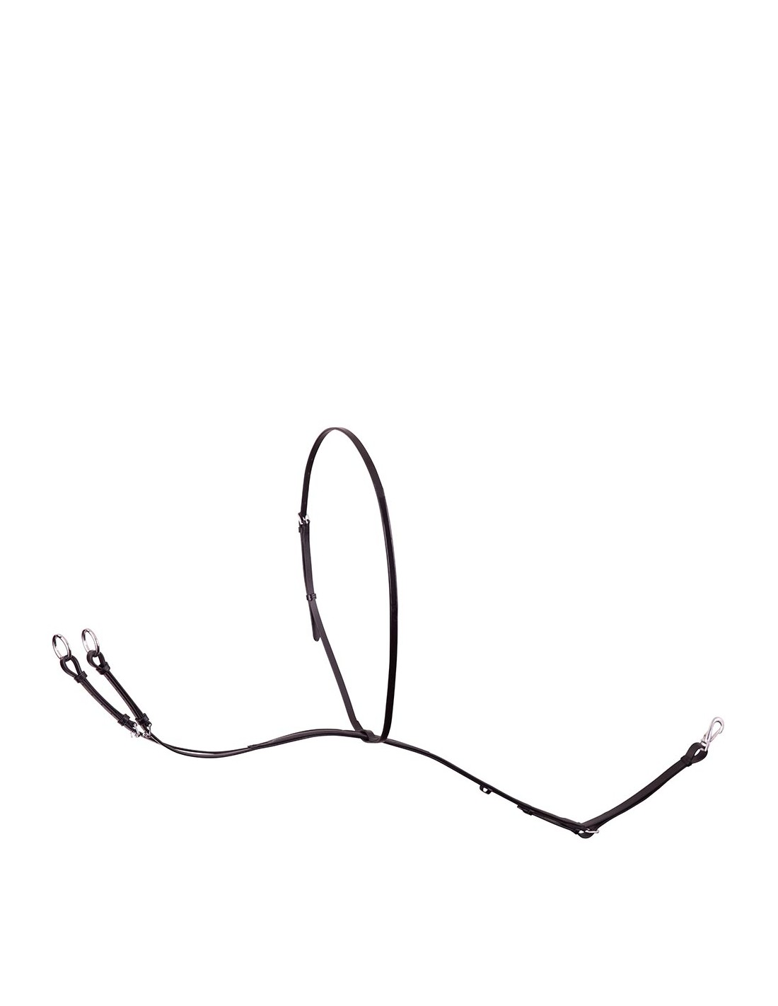 Soepele, lederen martingaal met roestvrije messing fournituren. De martingaal, meestal gebruikt bij het springen, voorkomt dat het paard het hoofd omhoog kan gooien. Bovendien zorgt de martingaal voor een hoek in de teugels als het paard het hoofd toch omhoog brengt, waardoor het bit neerwaarts kan inwerken op de lagen en niet op de minder gevoelige mondhoeken.