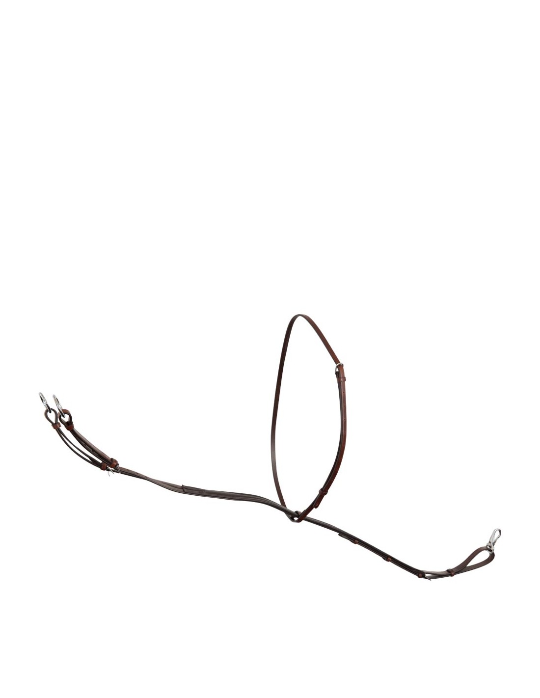 Soepele, lederen martingaal met roestvrije messing fournituren. De martingaal, meestal gebruikt bij het springen, voorkomt dat het paard het hoofd omhoog kan gooien. Bovendien zorgt de martingaal voor een hoek in de teugels als het paard het hoofd toch omhoog brengt, waardoor het bit neerwaarts kan inwerken op de lagen en niet op de minder gevoelige mondhoeken.