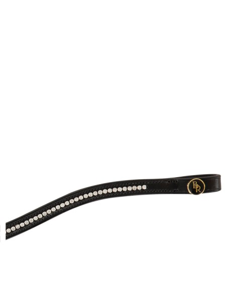 Dit licht gebogen frondeel is gemaakt van hoogwaardig, flexibel leder. De ketting ingelegd met verfijnde Stellux™-imitatiediamanten geeft je hoofdstel een glanzende en elegante look. De imitatiediamanten zitten helemaal omklemd, waardoor ze extra stevig vast zitten.