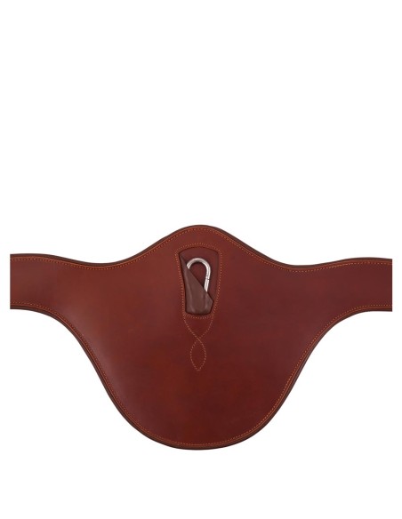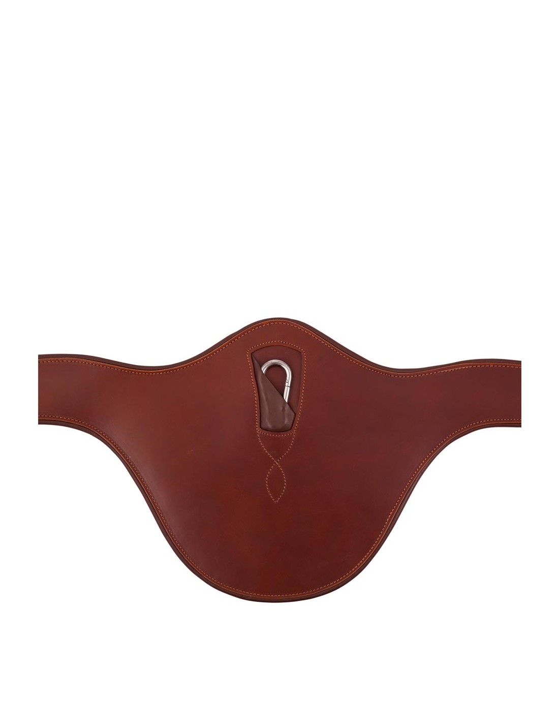 Lederen, springsingel met vaste buikflap met karabijnhaak voor bevestiging van eventuele hulpteugels. De singel heeft aan beide zijden elastiek en een extra D-ring voor eventuele bevestiging van het voortuig. De singel is voorzien van roestvrijstalen rolgespen en sierstiksel.