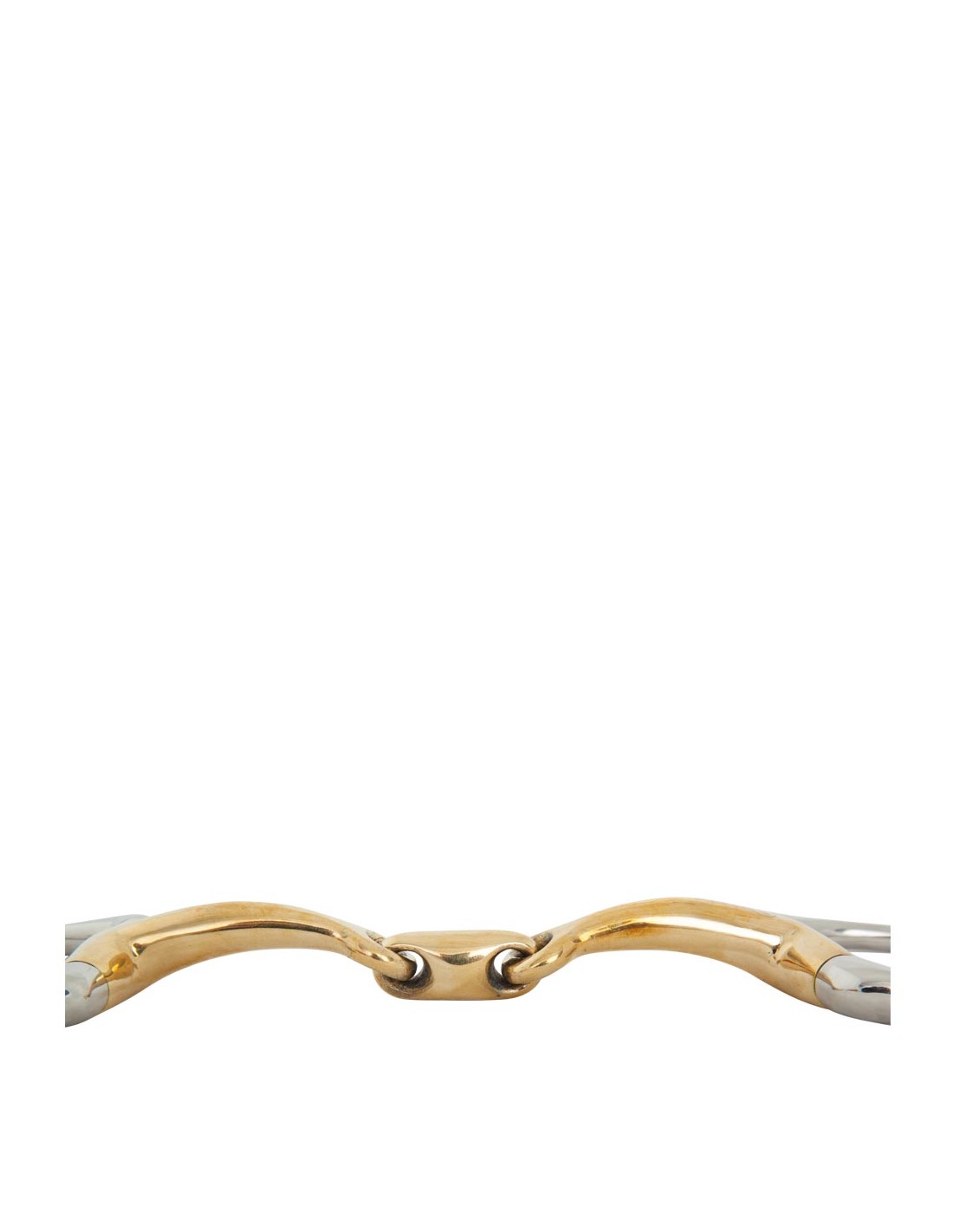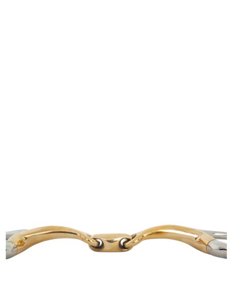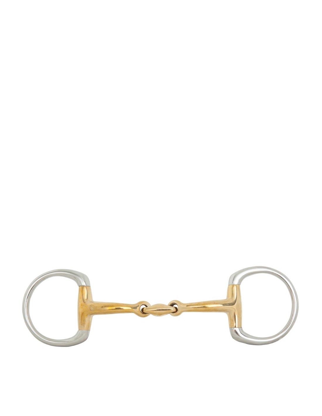 Deze kwalitatief hoogwaardige dubbel gebroken bustrens is vervaardigd van massief Cuprigan met roestvrijstalen ringen. Cuprigan is een legering bestaande uit 89% koper, 7% aluminium, 3% ijzer en 1% zink. Het oxidatieproces van het materiaal geeft een prettige geur en smaak. De anatomische vormgeving volgt de vorm van de paardenmond, waardoor een zachte en gelijkmatige drukverdeling ontstaat. Door de combinatie van de vormgeving en de unieke samenstelling van Cuprigan, wordt het kauwproces en de speekselvorming gestimuleerd, waardoor er een fijne verbinding kan ontstaan met de gevoelige paardenmond. Het bit heeft een zachte inwerking op de mond. Het mondstuk heeft een dikte van 14 mm en de ovale bitringen hebben een diameter van 55 mm.