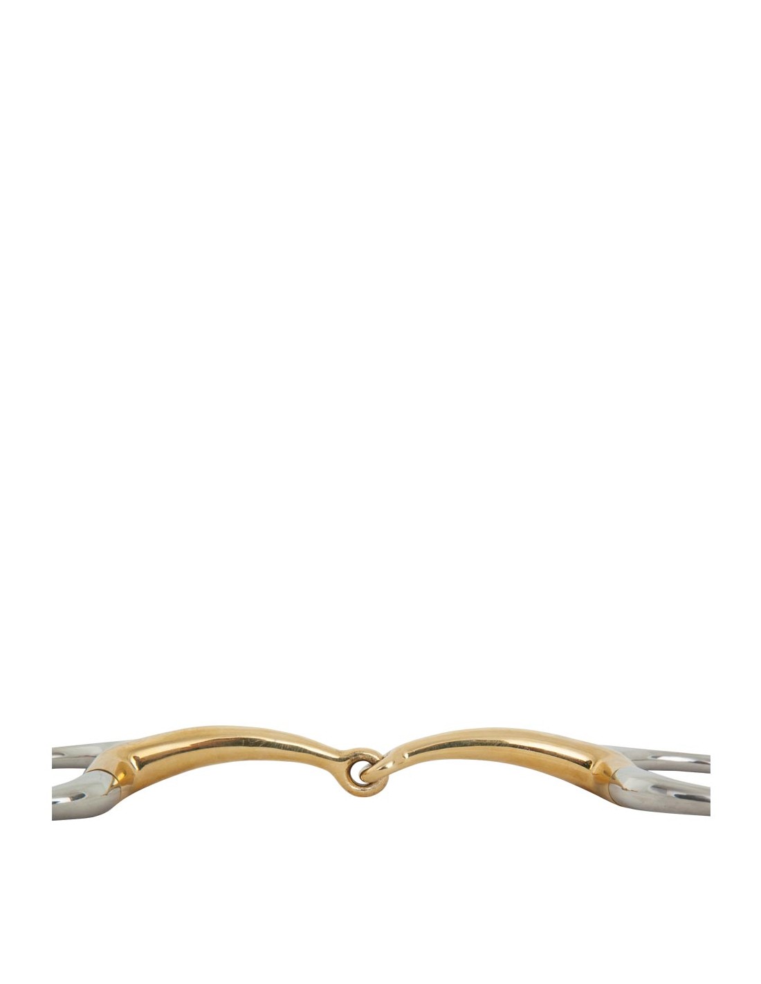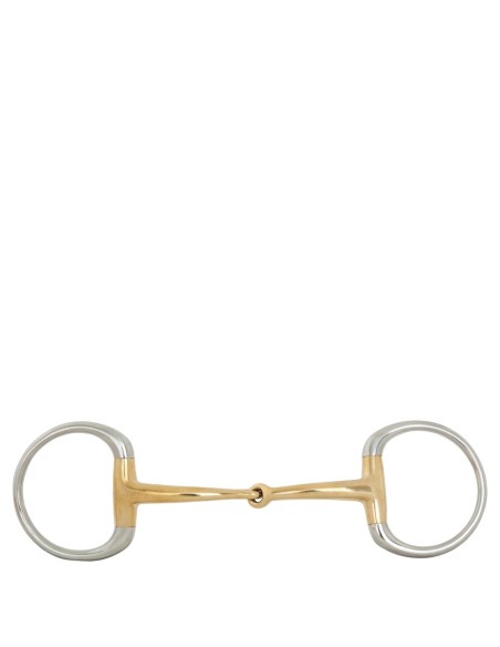 Deze kwalitatief hoogwaardige enkel gebroken bustrens is vervaardigd van massief Cuprigan met roestvrijstalen ringen. Cuprigan is een legering bestaande uit 89% koper, 7% aluminium, 3% ijzer en 1% zink Het oxidatieproces van het materiaal geeft een prettige geur en smaak. De anatomische vormgeving volgt de vorm van de paardenmond, waardoor een zachte en gelijkmatige drukverdeling ontstaat. Door de combinatie van de vormgeving en de unieke samenstelling van Cuprigan, wordt het kauwproces en de speekselvorming gestimuleerd, waardoor er een fijne verbinding kan ontstaan met de gevoelige paardenmond. Het bit heeft een zachte inwerking op de mond. Het mondstuk heeft een dikte van 14 mm en de ovale bitringen hebben een diameter van 65 mm.