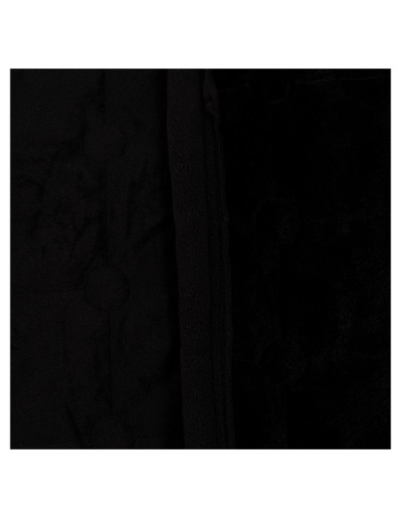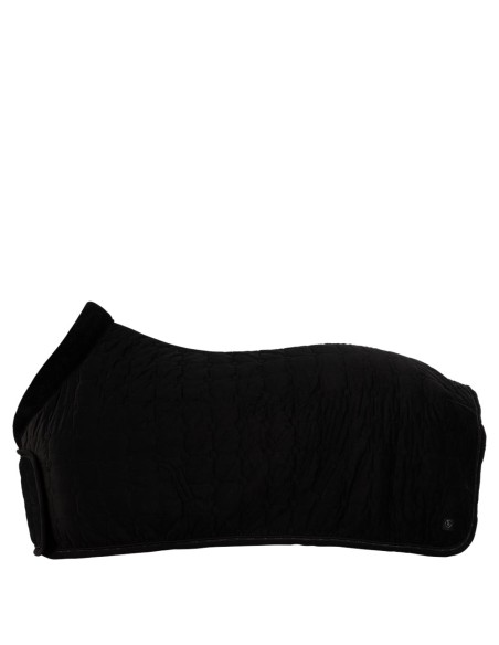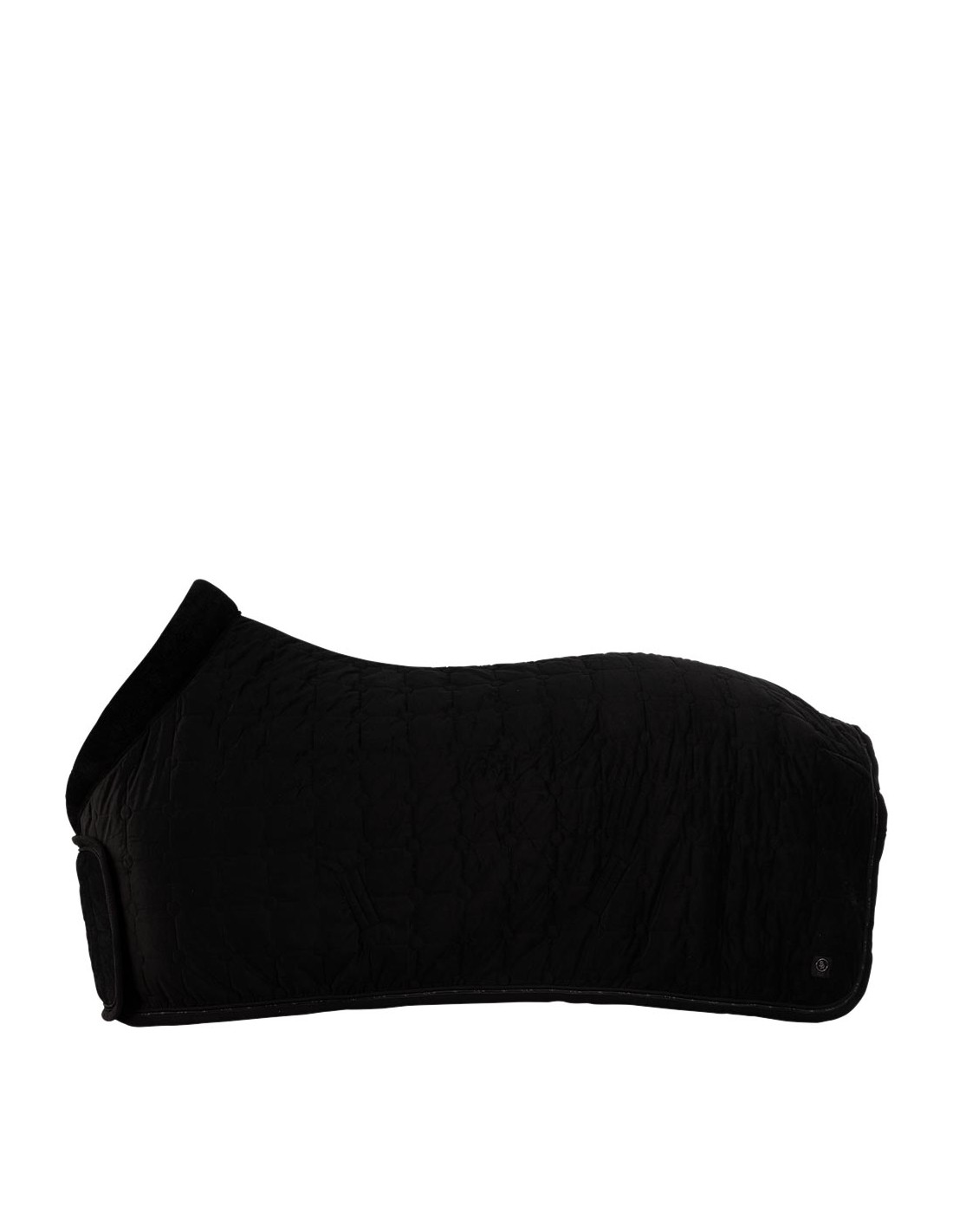 De deken heeft een elegante buitenzijde van fluweel (velvet) met een vierkante stepping met cirkels op de hoekpunten. De deken is sierlijk afgewerkt met een koordbies en een bies met CLX erop.