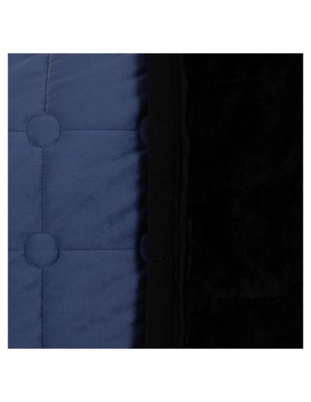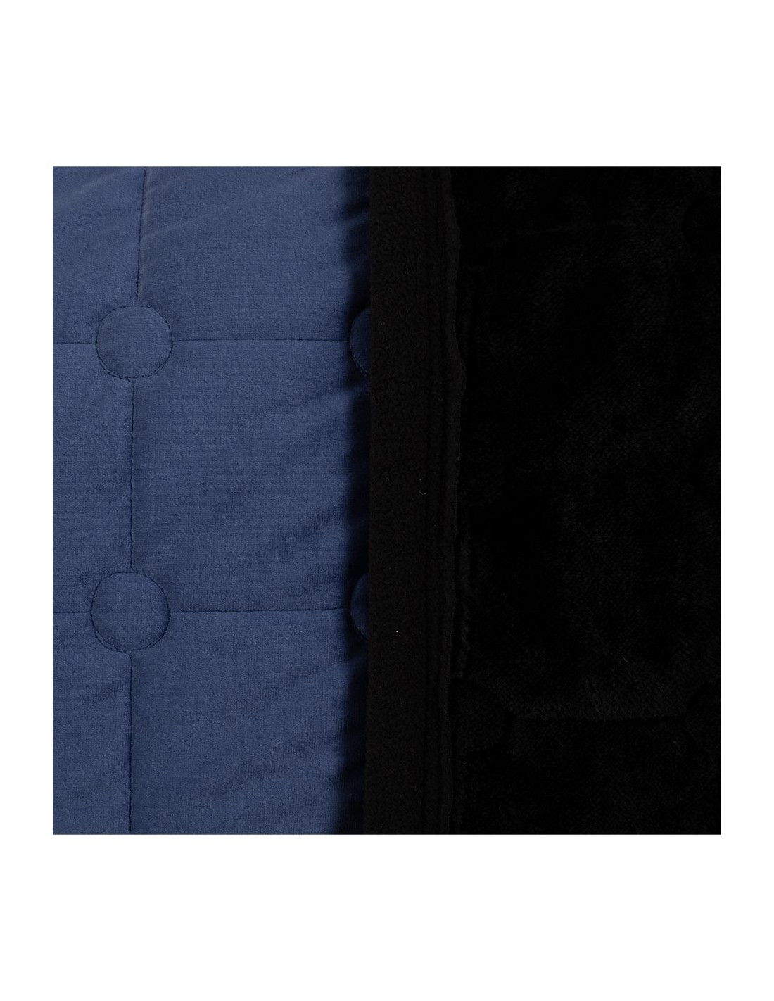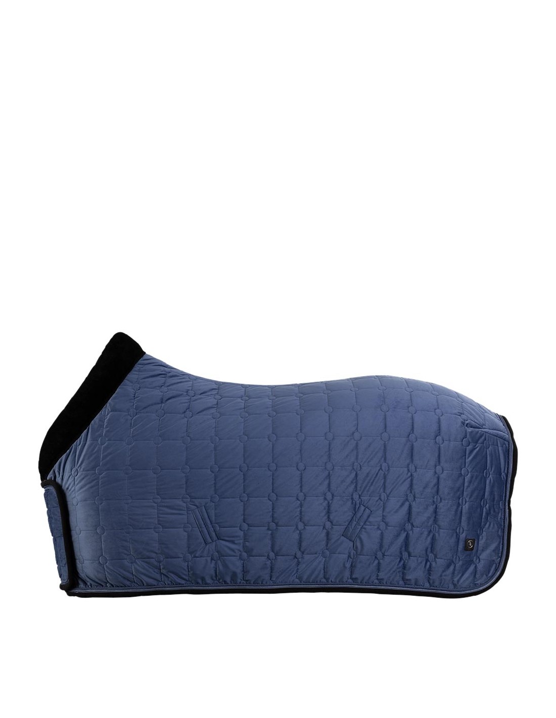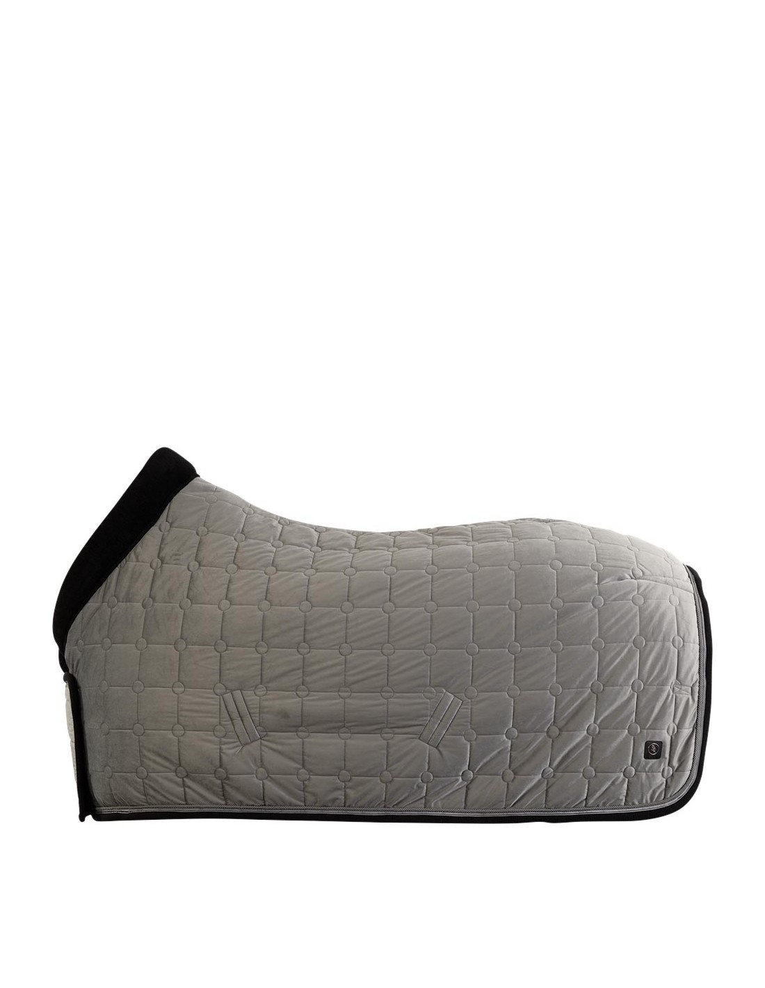 De deken heeft een elegante buitenzijde van fluweel (velvet) met een vierkante stepping met cirkels op de hoekpunten. De deken is sierlijk afgewerkt met een koordbies en een bies met CLX erop.