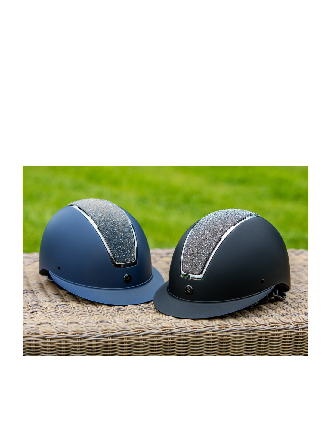 Deze stralende BR rijhelm Omega Glamourous is een echte musthave! De 3D glittertop ligt als het ware bovenop de helm zodat deze extra goed opvalt en is afgewerkt met kleine imitatiekristallen om de top nog meer te laten schitteren. Daarnaast is de helm voorzien van ventilatiegaatjes voor een goede luchtdoorlatendheid en een groot vizier.