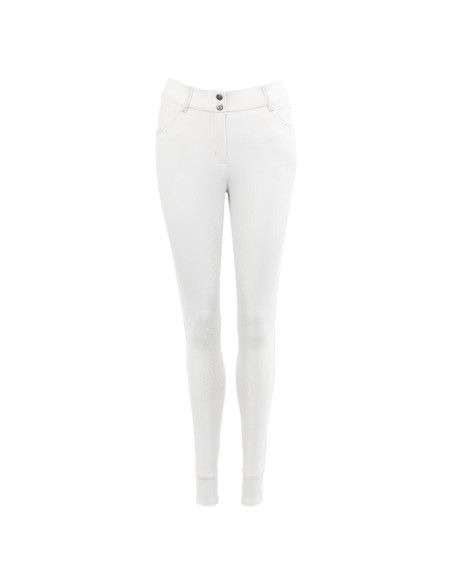 De rijbroek Brighton is afgewerkt met glanzende, zilveren elementen, zoals contrastbiezen en imitatiediamanten op de zakken. De stretchstof, elastische tailleband en elastische beensluiting zorgen voor een optimale pasvorm. Het siliconen zitvlak met grafisch patroon zorgt voor een stabiele zit.