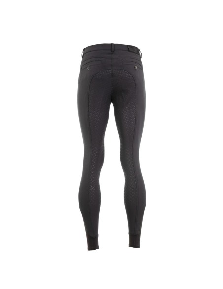 Deze heren rijbroek met klassieke uitstraling bevat een siliconen zitvlak voor extra grip en een stabielere zit. De rijbroek is voorzien van twee steekzakken aan de voorkant en twee paspelzakken aan de achterkant. De voorzakken kunnen gesloten worden met behulp van een drukknopje aan de binnenkant en ook de achterzakken zijn voorzien van een knoopje.