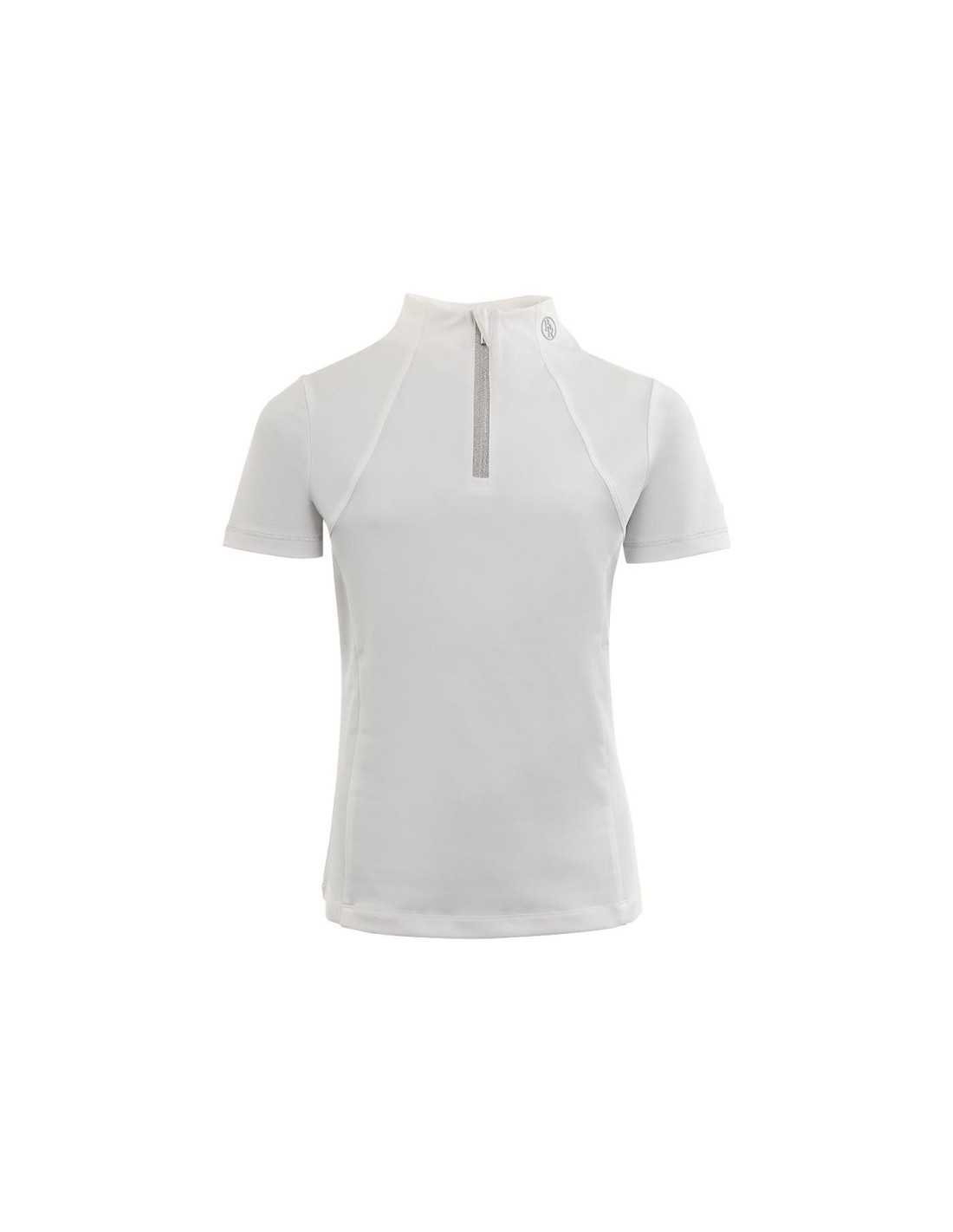 Dit elegante wedstrijdshirt voor kinderen valt op door de zilveren details zoals de rits en de mooie, hoge kraag. De stof is vochtregulerend en sneldrogend wat het draagcomfort optimaal maakt. Omdat het een stretchshirt is, heeft het een prettige, nauwsluitende pasvorm. De rits is voorzien van een ritsbeschermer. De zilveren flatlockstiksels en BR-logo's op de mouw en kraag maken het wedstrijdshirt op stijlvolle wijze af.