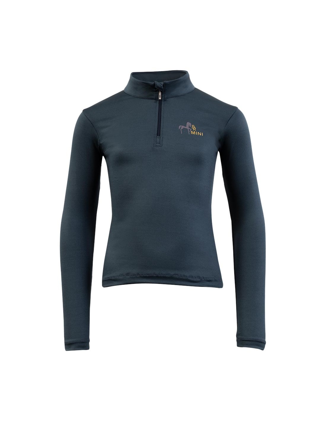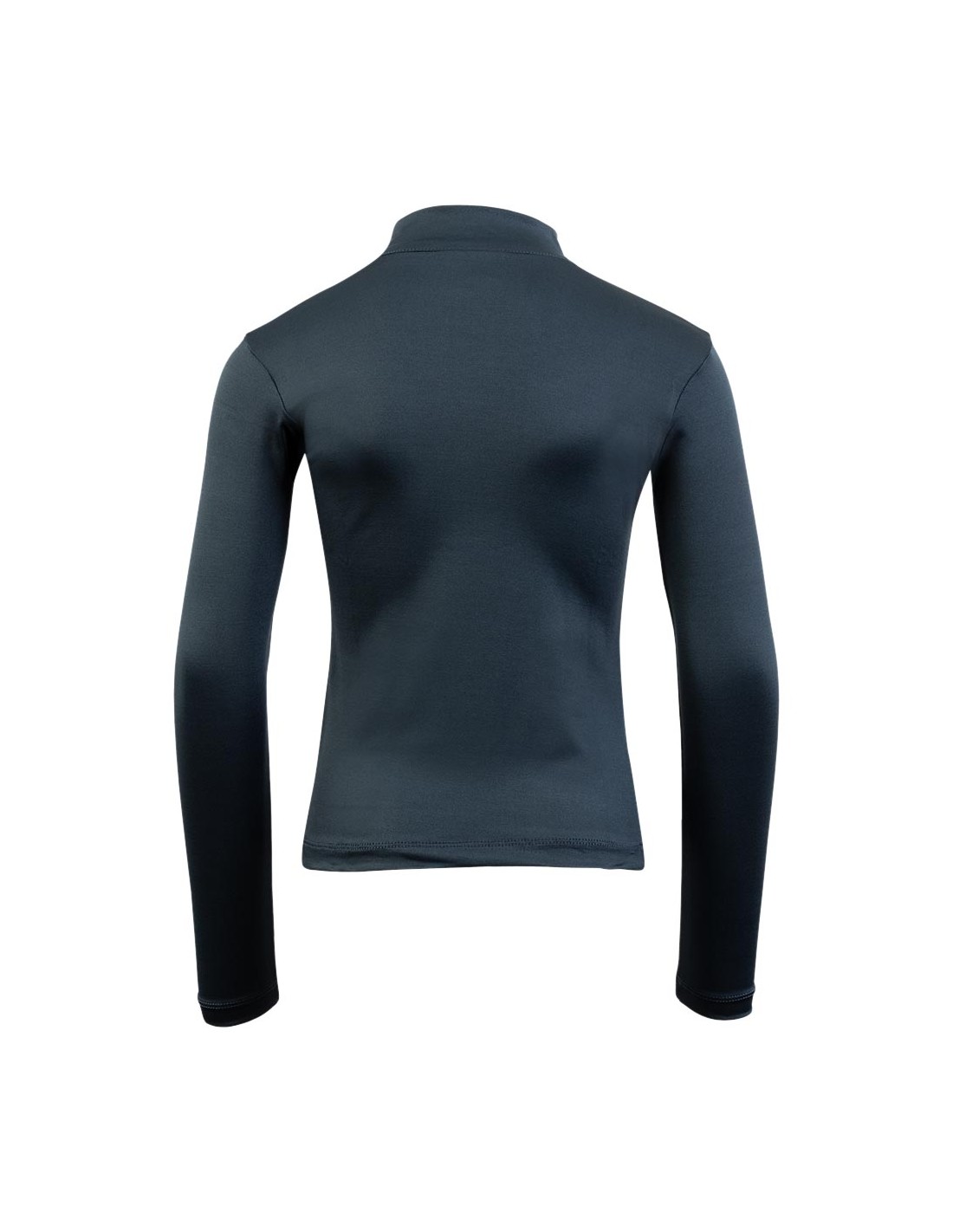Dit comfortabele, kleurrijke shirt met lange mouwen is ideaal voor actieve ruiters vanwege de vochtafvoerende eigenschappen van de stof. De stof is daarnaast ook rekbaar, wat voor een mooie, nauwsluitende pasvorm zorgt. Het shirt heeft een opstaande kraag met ritssluiting . De sierlijke, dunne rits is afgedekt met een beschermflapje ter bescherming van de huid. Dankzij de vrolijke kleuren en de kleurrijke, subtiele print op de borst zal de kleine ruiter alle harten op de manege laten smelten.