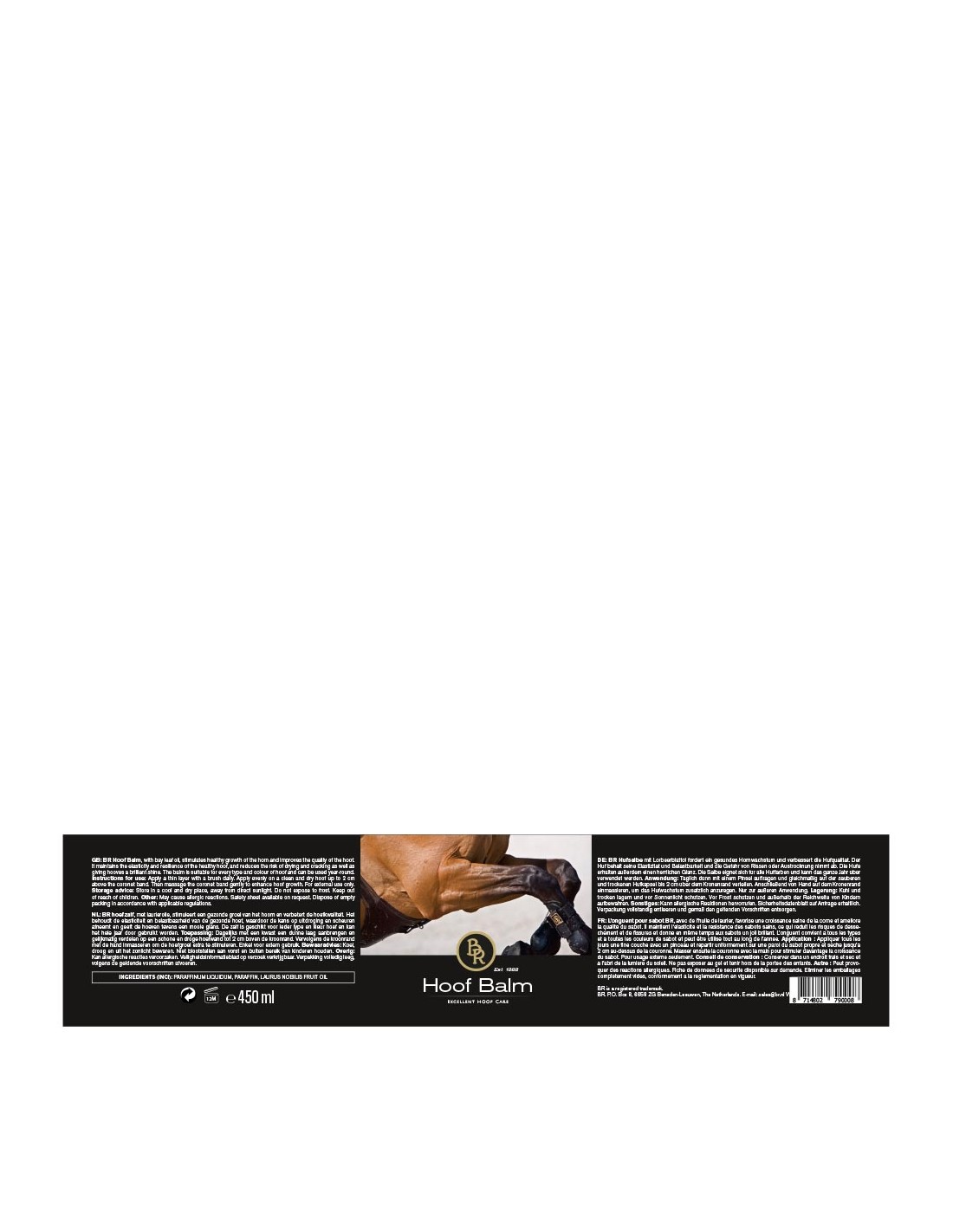BR hoefbalsem, met laurierolie, stimuleert een gezonde groei van het hoorn en verbetert de hoefkwaliteit. De zalf behoudt de elasticiteit en belastbaarheid van de gezonde hoef, waardoor de kans op uitdroging en scheuren afneemt en geeft de hoeven tevens een mooie glans. De zalf is geschikt voor ieder type en iedere kleur hoef en kan het hele jaar door gebruikt worden.