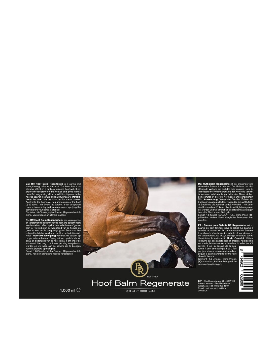 De BR hoefbalsem Regenerate is een verzorgende en versterkende balsem voor de hoef. De balsem heeft een herstellend effect op het hoorn dat broos of gebarsten is. Het verbetert de weerstand van de hoeven en geeft ze een mooie, langdurige glans. Daarnaast beschermt het de hoeven tegen vocht en schadelijke stalmest.