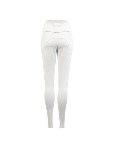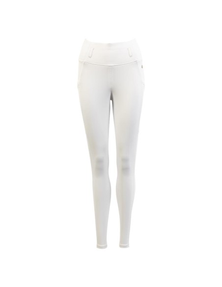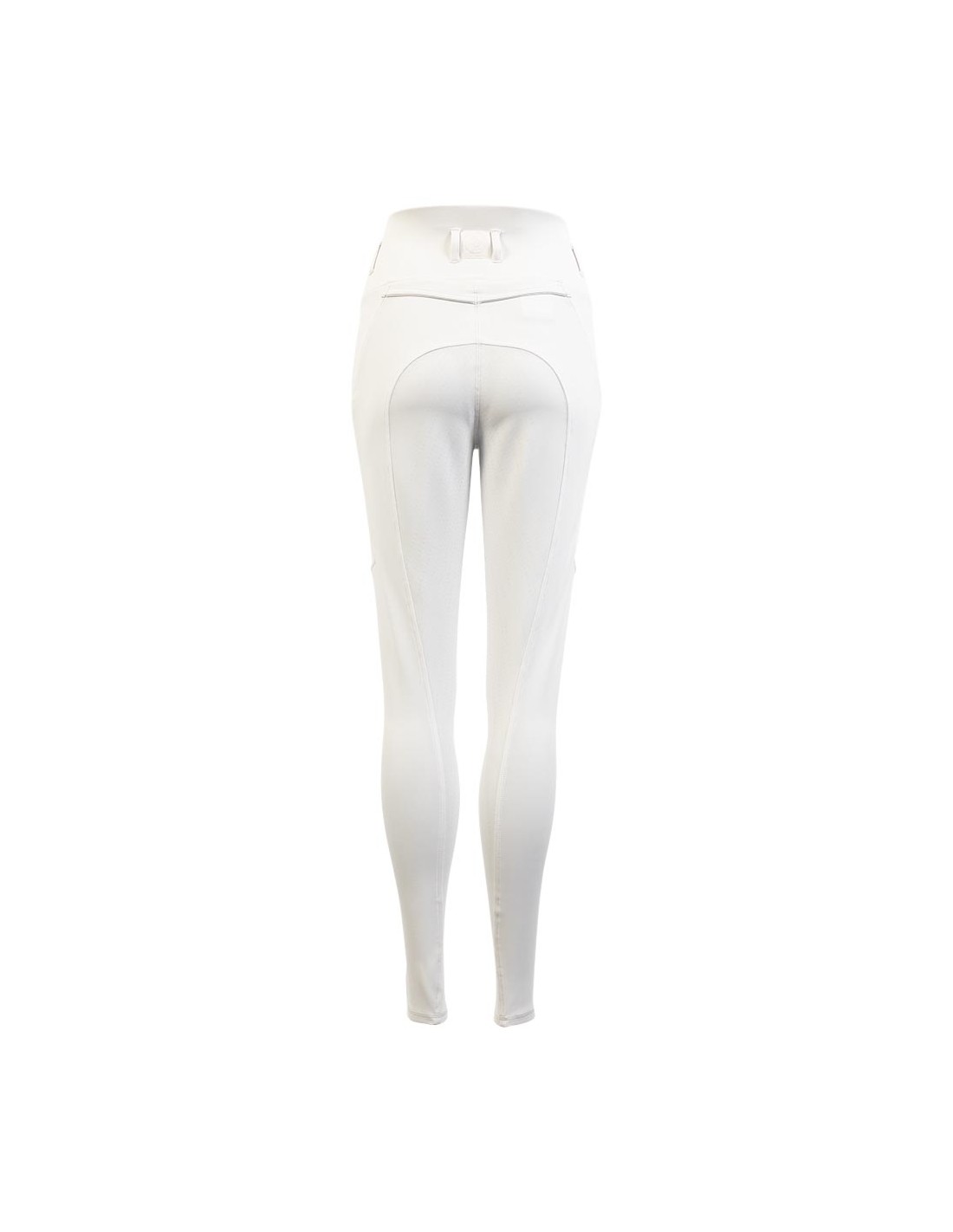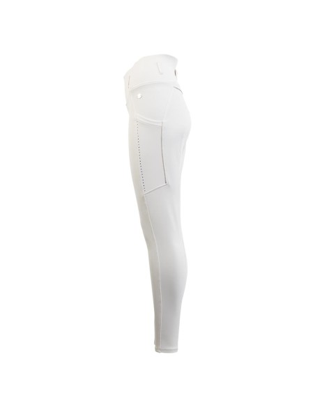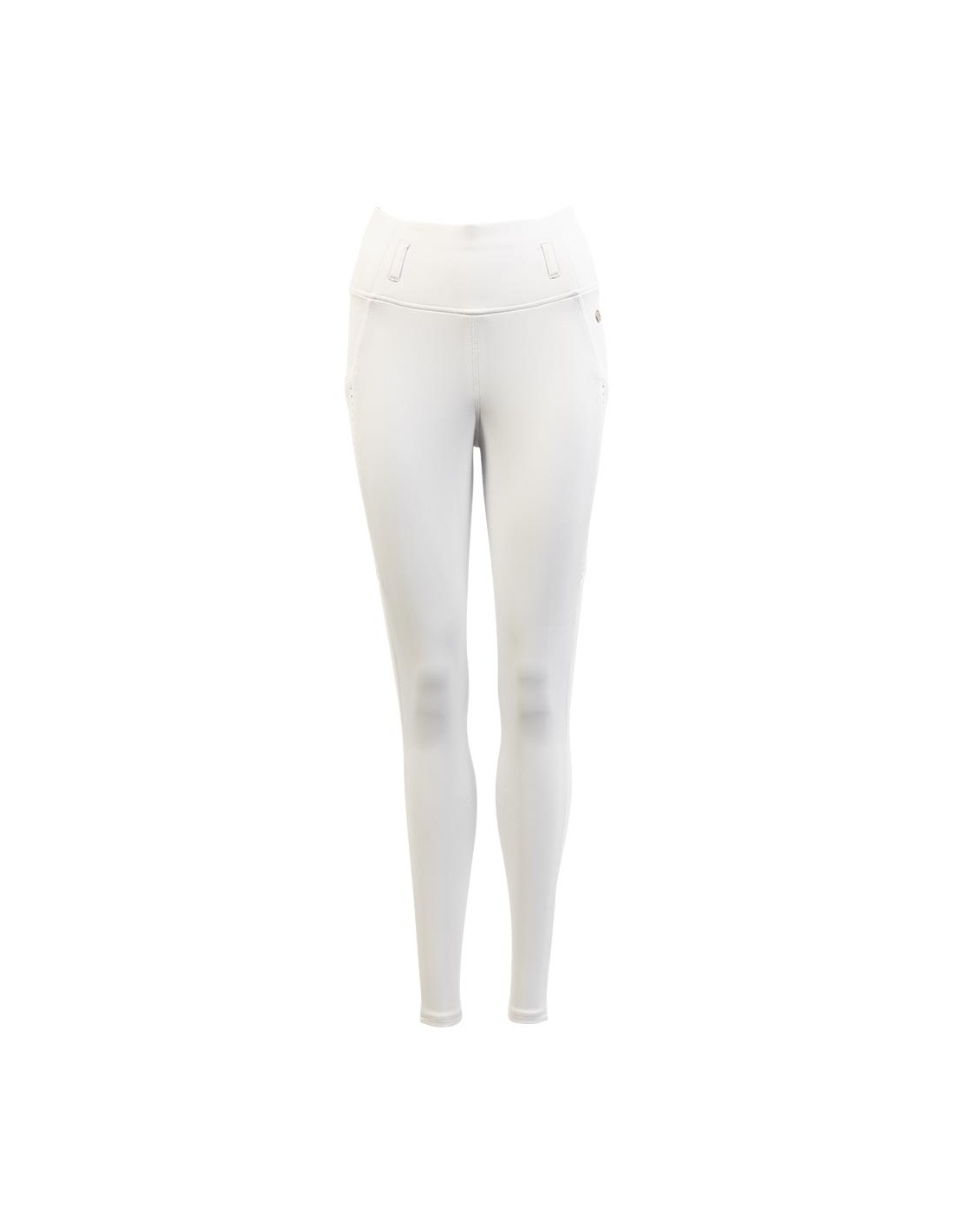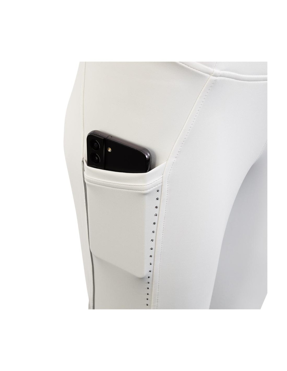 De stevige, duurzame stof blijft lang mooi zodat je er lang plezier van hebt. De diepe zijzakken aan beide zijden zijn geschikt om een mobiele telefoon in kwijt te kunnen. Strass-steentjes en de subtiele, metallic-kleurige biezen geven deze wedstrijdrijbroek een chique twist. Het siliconen zitvlak zorgt voor extra grip en een stabiele zit.