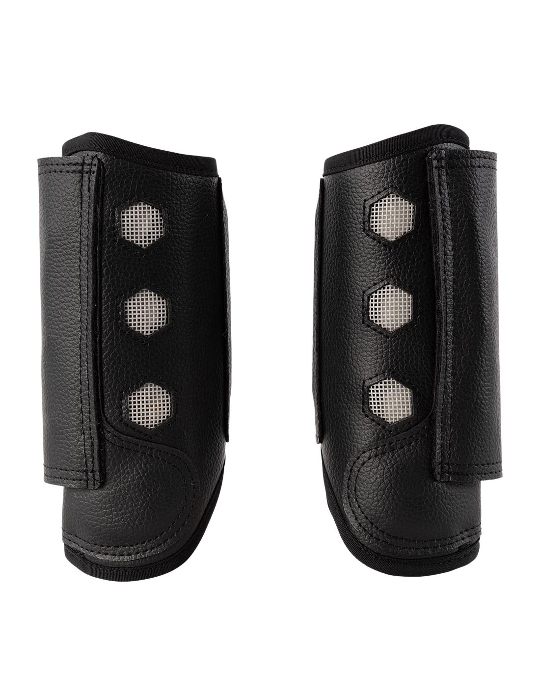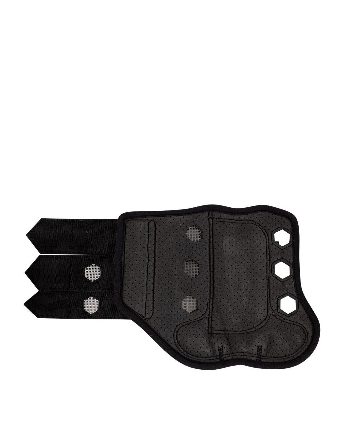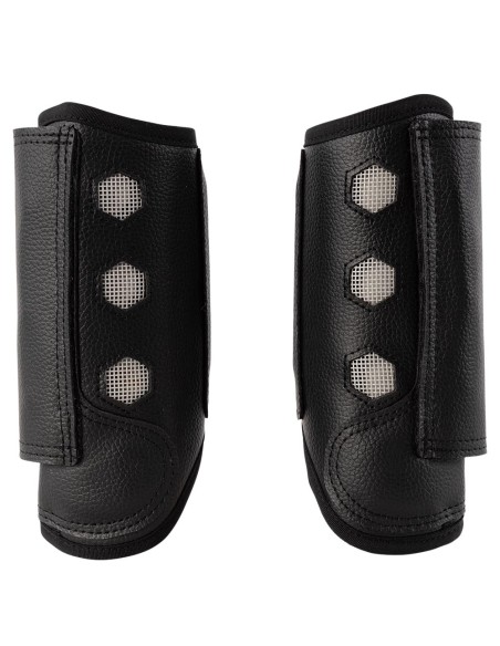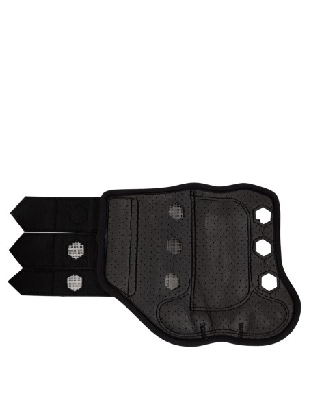 De beschermer is voorzien van verharde stukken en een stevige laag van PU op de plekken waar het paardenbeen extra bescherming nodig heeft. De binnenvoering is schokabsorberend voor optimale bescherming. Het stevige, dubbele klittenbandsysteem zorgt voor extra stevigheid en voorkomt dat de beschermers afzakken.