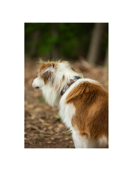 Deze mooie, verstelbare halsband is enorm stevig en gaat lang mee. De glanzende gesp en ring om de lijn (artikel 471023) aan te bevestigen zijn van stevig nikkel. De stijlvolle borduursels geven de halsband een speelse look.