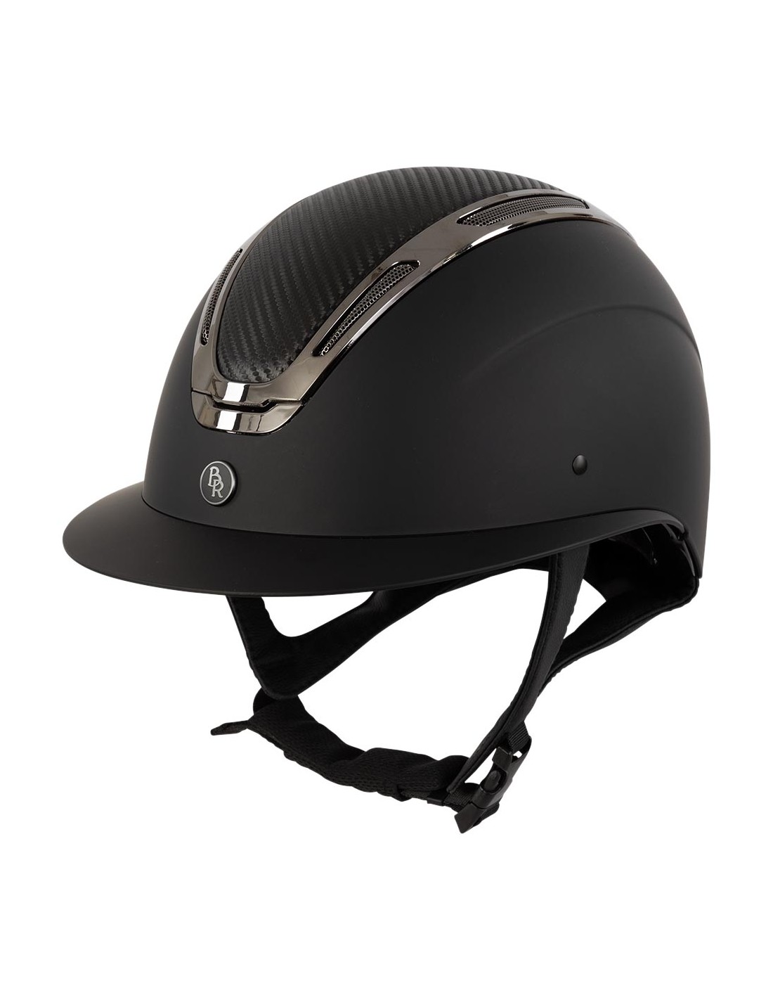 De BR rijhelm Zeta Sport heeft een lichtgewicht schaal van ABS en is voorzien van sierlijk gevormde gunmetalkleurige ventilatiegaten voor een heerlijk fris gevoel in de helm. Bestel de uitneembare voering in jouw maat (artikel 549055). De voering is van Cooldry dat vochtafvoerend en ademend is voor een fris gevoel. De sluiting van luxe vegan leer is heerlijk zacht, heeft een cooldry bescherming voor de kin en bevat een extra foamvulling bij het achterhoofd.