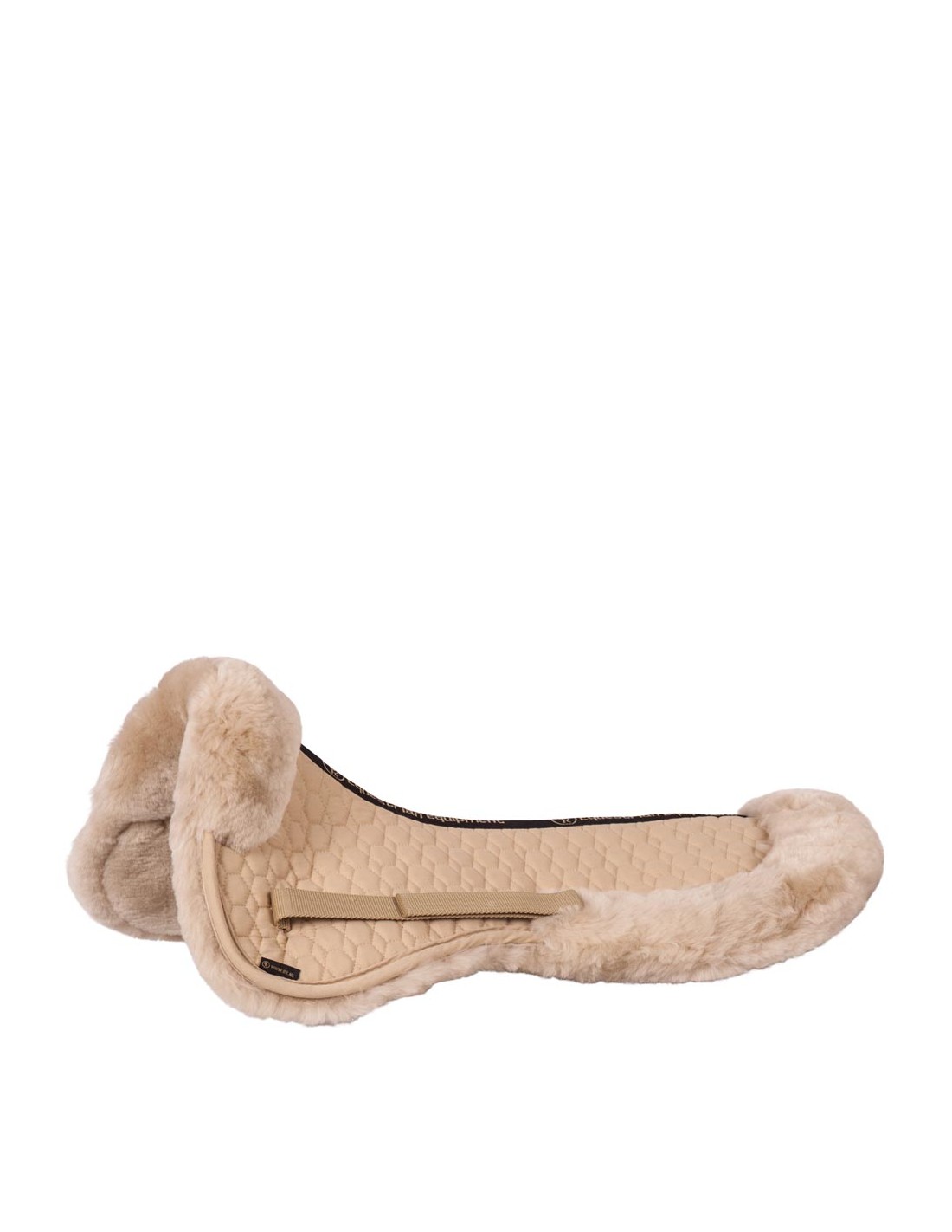 Katoenen zadelonderlegger met een medicinale schapenvacht onderzijde en rand.